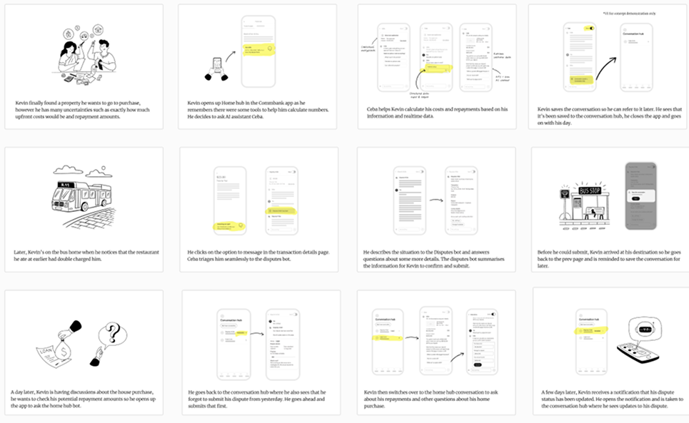 As a start, I mapped out the end to end journeys of Ceba using several key scenarios in order to identify all the components and patterns that make up all Ceba interactions. This exercise allowed me to breakdown the interactions into themes and set out a skeleton for our future pattern library.